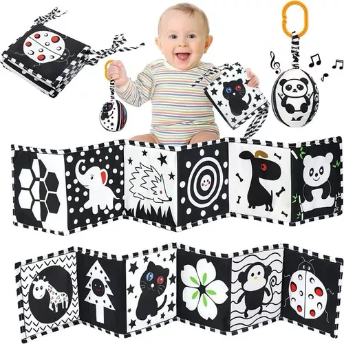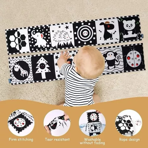 Libro blanco y negro para recién nacidos ideales para usar en la cuna para evitar choques , juguetes de alto contraste para bebés de 0 a 12 M